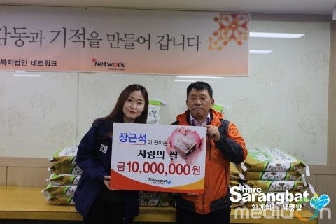 함께하는 사랑밭에도 5년 이상 지속적인 기부를 해온 그는 작년 12월에도 어김없이 쌀 나눔 금액을 전달했으며, 이 때문에 사랑밭은 매년 겨울만 되면 말없이 기부를 수행하는 얼굴 없는 천사로 유명하다. 기부금으로 구매된 쌀은 사회복지법인 네트워크와 인천의 저소득 가정에 전달되었다. 나눔쌀을 받은 한 어르신은 연말·연초만 되면 쌀이 부족해 걱정이었는데 많은 도움이 되었다면서 장근석과 사랑밭에 감사를 전했다.