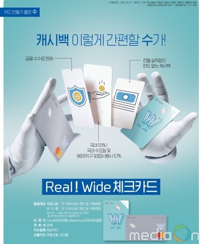 REAL!-Wide 체크카드는 온라인을 포함한 국내 가맹점 이용시 0.5%의 캐시백을 한도 제한없이 제공하며, 국내가맹점에서 매주 수요일 사용한 이용금액과 해외가맹점 이용 금액에 대해서는 0.7% 캐시백을 한도 제한없이 제공하는 Simple형 상품이다.
