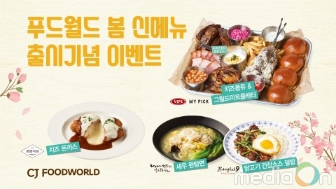 신메뉴 출시를 기념해 지난 6일부터 29일까지 CJ푸드월드 코엑스몰점, 잠실롯데점, 인천공항점 등 3개 매장 내 18개 브랜드 대상으로 신메뉴 주문 시 사이드 메뉴를 무료 제공 또는 할인 판매한다. 입점 브랜드는 매장 별로 상이하며 자세한 내용은 6일부터 CJ ONE 애플리케이션을 통해 확인할 수 있다.