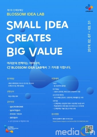 먼저 3월 31일까지 신기술 및 신사업 아이디어 공모전인 "CJ제일제당 Blossom Idea Lab" 1기 모집을 진행한다. 국내에서 활동 중인 대학원생 이상의 연구자를 대상으로 마이크로바이옴과 레드바이오, 화이트바이오, 푸드테크 등 식품 및 바이오 분야의 새로운 기술 또는 아이디어를 공모해 총 네 팀을 선발하는 방식이다.