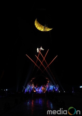 주제공연 ‘영덕 판타지 - 왕의 대게, 빛이 되다’는 대게의 전설과 영덕의 희망을 판타지로 풀어낸 넌버벌 퍼포먼스로 의상, 소품, 다양한 조명 연출을 통해 현실과 판타지 세계를 오가는 무대를 선보였다. 특히 기중기를 이용해 와이어를 맨 무용수들이 하늘을 나는 퍼포먼스는 많은 이들의 환호성을 자아냈다.