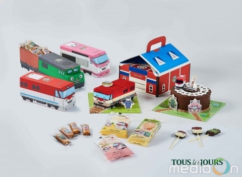 ‘띠띠뽀 띠띠뽀 휭거마드레느’는 촉촉하고 부드러운 미니 마들렌이 개별 포장되어 있어 아이들 간식으로 제격이다. ‘띠띠뽀’와 ‘지니’, ‘디젤’ 모양의 패키지를 당겨 열면 길어지는 모습이 실제 기차를 연상케 한다. 다 먹고 난 뒤에는 아이들 장난감이나 수납함으로도 활용 가능하다. 이 외에도 캐릭터 스티커가 든 ‘우유 듬뿍 치즈 케이크’와 ‘미니샌드’ 등도 선보인다.