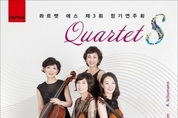‘Quartet S 제3회 정기연주회’가 4월 2일 오후 8시 예술의전당 IBK챔버홀에서 개최된다. 공연은 피아니스트 이혜전, 바이올리니스트 홍종화, 비올리스트 김성은, 첼리스트 임경원의 무대와 Beethoven, Schumann, 김진수 작곡가의 작품들로 구성된다. ● 공연자 및 작곡가 개요 Piano 이혜전 · 서울예고, 서울대 기악과 수석졸업, 미국 뉴잉글랜드 음악원 석사, USC 박사 · KBS교향악단, 서울시향, 서울 챔버 오케스트라, 코리안심포니, Hungary Szeged Orchestra, 불가리아 소피아 챔버 오케스트라 등 다수 협연 · 베토벤 피아노 소나타 전곡 연주, 바이올리니스트 홍종화 교수와 베토벤 바이올린 소나타 전곡 연주 · 줄리어드 예비학교 교수 역임 · 현재 : 숙명여대 교수, 한국피아노학회 회장 Violin 홍종화 · 예원, 서울예고 졸업, 서울대 재학 중 도미, 줄리어드 음대 및 동 대학원 졸업 · 미국, 영국, 독일, 오스트리아, 체코, 네덜란드, 이탈리아, 호주, 러시아 외 국내외 다수 독주 및 협연, 실내악 연주 · 피아니스트 이혜전 교수와 베토벤 바이올린 소나타 전곡 연주 · 서울