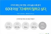 구직자가 원하는 희망 근로 연령은 나이가 높을수록 증가하였으며 60대 이상 구직자의 경우 희망 근로 연령이 평균 72세인 것으로 나타났다. 생활밀착 일자리를 제공하는 벼룩시장구인구직이 구직자 1040명을 대상으로 정년퇴직과 상관없이 몇 세까지 일하고 싶냐고 질문한 결과 평균 ‘63.9세’까지 일하고 싶다고 답한 것으로 조사되었다. 연령대별로 살펴본 결과 20대가 ‘61.5세’로 가장 낮았고 60대 이상이 ‘72세’로 20대와 60대의 희망 근로 나이는 10.5세 정도 차이가 났다. 또한 30대는 ‘62.8세’, 40대는 ‘64세’, 50대는 ‘66.5세’로 나이가 많아질수록 일하고 싶은 연령도 점점 높아지는 현상을 보였다. 전체 분포를 살펴보면 ‘60세~64세’가 27.3%로 가장 많은 비율을 차지했고 ‘65세~69세’가 21.3%, ‘70세 이상’이 18.1%, ‘55세~59세’가 17.8%였다. 반면 45세~49세는 7.1%에 불과하며 40대까지 일 하고 싶다고 응답한 사람의 비율은 낮은 것으로 집계되었다. 구직자들이 구직활동을 하는 가장 큰 이유로는 무려 70.7%가 ‘생계유지 등 경제적 사정’을 1위로 꼽았다. 이어 ‘자아성취감을 느
